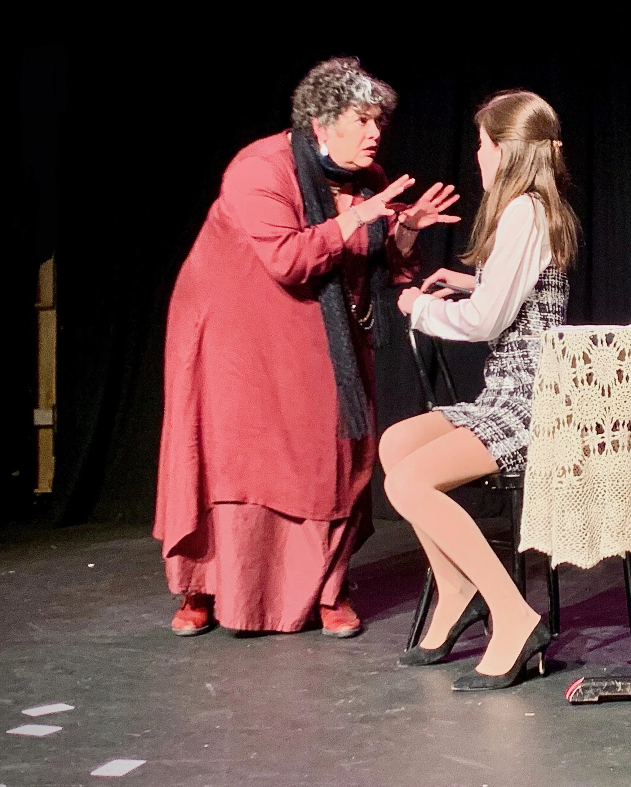 Renee Panagos and Carl Hoffman in The Clock Strikes 17 at Playwrights at Night, directed by Carl Hoffman, 2022. Photo by Sheila Duane.